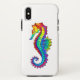 Articulação artificial, brilhante, arco-íris, cavalo de mar poligonal sobre fundo branco. Tatuagem brilhante.