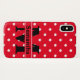 Capa de telefone com estilo retrorreflector com um padrão de bolinhas brancas em um fundo vermelho. Adicione seu nome e inicial para personalizar ou excluir conforme necessário.