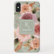 "Sage Foliage Blush Peony Rosa Floral Name iPhone XS Max Case." Um fundo e uma moldura de latência de prata (pode ser mudada) mostra as aquarelas modernas, do estilo pareado. Capturando lindamente a beleza etérea deste design floral. Rosas, peônias e flores ranunculus com samambaias verdes e folhas úmidas, com cor de tons de terra e verde florestal. Todos foram lindamente pintados em aquarela pela artista e designer internacionalmente licenciada, Audrey Jeanne Roberts.