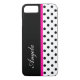 capas personalizadas de smartphone monograma com padrão de bolinhas preto e branco chic e faixa de moda rosa que você pode personalizar, e espaço livre de nomes que você pode criar substituindo o nome do modelo pelo seu ou adicionando suas iniciais monográficas. Permite que você carregar seu celular no seu estilo pessoal.