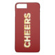 "Cheers" escrito em vintage dourmarquee acende este iPhone 7 Plus Case em um fundo vermelho de amora, fazer presente de Natal festivo.