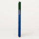 Fantasia colorida com o caso do iPhone X feito em verde sobre o padrão de gradiente verde, na parte superior do caso e um padrão azul de gradiente, na parte inferior. Trabalho de arte de gráficos de um dragão chinês azul e verde, decora o meio do gabinete. Personalize o monograma verde de uma letra para atender às suas necessidades.