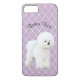 Caso bonito do telemóvel que caracteriza uma ilustração de um Bichon Frise. Cor customizável e textos do fundo. Presente perfeito para o amante do cão ou o proprietário de Bichon Frise.