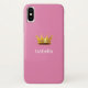 Coroa dourada em capa de iPhone X de dourado rosa. Nome pronto para ser personalizado.