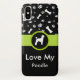 Mostre quanto você ama seu animal de estimação da raça do cão de caniche com estes na moda e caso na moda do smartphone projetados com os ossos de cão bonitos e o teste padrão e o texto que do impressão da pata você pode personalizar com sua própria mensagem do amor para seu animal de estimação da família. Inclui uma silhueta de uma caniche em um emblema no caso.