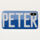 Faça sua escolha de nome aparecer corajosamente em uma capa de telefone de dois tons. Exemplo mostra o nome Peter. Personalize com sua escolha de nome curto.