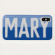 Faça sua escolha de nome aparecer corajosamente em uma capa de telefone de dois tons. Exemplo mostra o nome Mary. Personalize com sua escolha de nome curto.