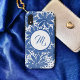 Design Floral Azul Monogramado © por Cathy Thompson é uma busca moderna para seu novo telefone. Este design pode ser personalizado com seu nome ou inicial. O modelo está pronto para você.