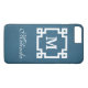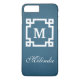 Design monograma com decoração de borda chave grega sobre fundo azul verde
