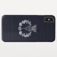 Um cromo prateado como um design de aplicação escocês num fundo de impressão de fibra de carbono azul de marinho racy para um presente de pele de um dispositivo personalizado de excelente.