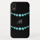 Capa de smartphone feminina com monograma elegante, projetada com joias de rhinestone turquesa simuladas que são impressas digitalmente na capa como obra de arte para imitar rhinestones em um estilo bling glamoroso que você pode personalizar online.