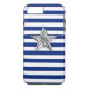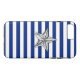 Um cromo prateado como design de estrela em uma decoração de listras azuis marinho. Um presente náutico moderno para o seu dispositivo. Use o link "Mensagem" para entrar em contato conosco com suas solicitações especiais de design ou para obter assistência com qualquer das suas necessidades de personalização.