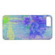 Essa capa de telefone lança uma colagem digital composta por várias camadas de varreduras de fotografias, pinturas e texturas. Um aglomerado de flores violetas azuis senta sobre um fundo abstrato em tons de lavanda, verde, roxo e tons de azul.