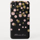 Girly Monogramas Faux Blush Pink - Rosa Dourado com Gold Foil Confetti em uma Capa de telefone inteligente de fundo preto à qual você pode adicionar seu nome. Entre em contato com o designer se desejar itens adicionais correspondentes.