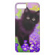 capas de iphone com um gatinho preto Gustav Klimt! Esta beleza de olhos largos se coloca num campo verde de flores roxas. Um presente pensativo para amantes de gatos e entusiastas de arte austríacos!