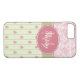 Lace rosa delicado e listras de wallpaper verde primavera com rosas ingleses adoram este design elegantemente feminino. Personalizado com seu nome e inicial.