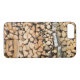 caso da proteção do iPhone 7 com os registros de madeira desbastados empilhados em uma pilha de modo operacional em uma lareira.