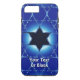 Uma simples imagem fractal, de tom azul, de múltiplas instâncias de um Magen David (Estrela de David) formada pela interseção de linhas de vidro ou cristal, a estrela central está cheia de azul escuro. Adicione seu próprio texto.