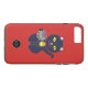Capas de iphone vermelha com gira e kawaii maneki-neko. Felinos japoneses sortudos acenam boa sorte para seus donos! O gato preto segura uma bola que é outro símbolo de boa sorte. O personagem kanji no medalhão deste gato é 'Daikichi' o que significa boa sorte. Personalize esta capa de telefone adicionando as suas iniciais ao monograma. Também disponível para outros modelos de iPhone.