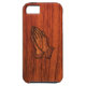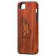 O impressão de madeira de mogno cristão bonito da textura com praying entrega a capa de telefone.