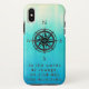 Teal Ombre Sea iPhone XS Max Case. Um rosa de bússola náutica para manter seus mancais oceânicos. Desfrute do efeito de ilusão óptica na moda do fundo ombre. Mantenha a citação "Nas ondas de mudança encontramos nossa verdadeira direção" ou adicione um nome, sentimento ou monograma para personalizar. Seja Personalizado, Seja Único, Seja Você no estilo fabuloso!