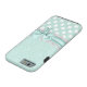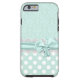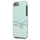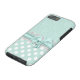 Mint verde e branco para o iPhone 6, com um verde de menta na cor damasco verde, no topo, e um verde de menta com padrão de bolinhas branco, na parte inferior. Gráficos de uma banda de rendas brancas e uma fita e arco verde da casa da moeda correm pelo meio entre as duas partes de trás. Personalizar para adicionar seu próprio texto. Excelente maneira de olhar na moda e proteger seu telefone ao mesmo tempo.