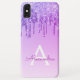 Roxo Ombre Sparkle e Faux Derrubando Glitter Girly Modern Monogramo Primeiro Nome e Capa de telefone Inteligente Inicial. Entre em contato com o designer para obter itens correspondentes
