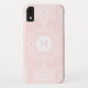 Esta capa de telefone de Natal apresenta um bonito padrão de flocos de neve design com monograma em fundo cor-de-rosa pincelado. Personalize-o com uma inicial.