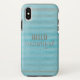 Olá Linda Capa de telefone De Padrões De Boho Striped. Bohemian Hello Linda Citação Rasgada No Caso Do iPhone X. Tipografia com azul lacrimogêneo e listras. Design da Bohemian Girl.