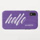 Capa Para iPhone, Case-Mate Olá White Script Name Purple Linen Texture