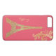 Caso do Glam iPhone 7 Plus, com um tom de ouro reluzente, uma silhueta com aparência de tom dourado da Torre Eiffel, sobre um fundo cor-de-rosa coral. Personalize o texto dourado amarelo, para você mesmo ou como uma ideia de presente de excelente.