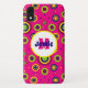Este cobrir de caixa de célula rosa quente tem um padrão colorido de círculos, círculos e mais círculos em amarelo brilhante, verde, borrado e marinho. Personalize o círculo branco e amarelo com seu nome, iniciais, monograma ou outro texto. Faça o círculo e o nome tão grande ou pequeno quanto quiser, ou remova-o completamente.