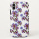 Esta capas de iphone personalizada fofinha foi projetada com lindos padrões roxos e azuis de flores em fundo branco.