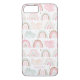 capa de telefone de padrão de arco-íris feminino e moderno em cores pastéis com gotas de chuva e nuvens. Este design é perfeito para uma garota!