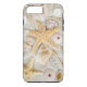 Uma coleção de conchas e uma estrela espalhada na praia arenosa, notem as intrincadas texturas e cores das conchas, criando um ambiente costeiro sereno.