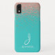 Rosa Gold Foil e Teal Girly Glitter Confetti Padrão em um Caso Elegante Monograma. Este Rosa Dourado - Minúsculo cor-de-rosa e azul-claro pode ser personalizado para incluir o nome inicial e o nome do cheio. Entre em contato com o designer para obter itens correspondentes.