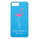 Uma ilustração de um flamingo cor-de-rosa brilhante e o Solteiro dito e Pronto para Flamingle em um fundo azul do céu acentua este Caso do iPhone 7 Plus, nos lembrando de férias ensolaradas quentes. Este caso divertido e liso é o acessório perfeito para o verão.