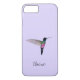 Esta capa de telefone personalizada apresenta um Starfrontlet Hummingbird com garganta azul sobre um fundo roxo leve. O estilo e o tamanho da fonte podem ser alterados clicando em "personalizar mais".