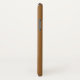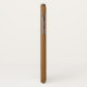 Capa de telefone celular modelada a partir de uma prancha de surfe antiga. Pinstripes em azul-céu e vermelho com fundo castanho-de-praia fornecem o pano de fundo para Tartarugas do Mar em estilo tribal com sotaques verdes-escuros.