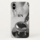 Caso de smartphone profissional médico para iPhone em um tema médico moderno com siglas RN, você pode personalizar com suas iniciais de nome ou usar a inscrição RN no nosso caso. Criado com a imagem de um estetoscópio e outros instrumentos de saúde. Melhor caixa de celular para um médico, enfermeiro ou profissional de saúde.