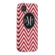 Caixa vermelha e branca da case mate do iPhone 4 do teste padrão de ziguezague de Chevron com o círculo preto e branco que contem o monograma de três letras. A maneira na moda de accessorize seu iPhone 4. personaliza com suas iniciais do monograma. Accessorize suas senhoras dos equipamentos!