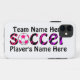 texto do impressão da zebra do ~ das capas de iphone na listra cor-de-rosa e roxa da zebra com uma bola de futebol. O nome customizável da equipe e do jogador, pode igualmente mudar a cor do caso. #soccer