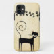 Gato preto e pegadas sobre fundo de colheita, ilustração gráfica