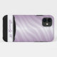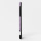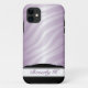 Maleta iPhone 5 do na moda desenhada com um padrão combinado de listras zebra gradiente roxo e personalizada com seu nome ou texto personalizado na parte inferior sobre uma área preta e branca da placa de nome.