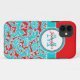 Esta caixa floral moderno, personalizado, de turquesa do azul, do vermelho, e a branca da cor damasco da case mate mal de There™ do iPhone 5 tem os pontos para você adicionar seu nome, iniciais, monograma, ou o outro texto. Se você precisa a ajuda que personaliza esta, envie por correio electrónico por favor niteowlstudio@gmail.com.