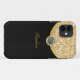 Capas de iPhone com monograma e elementos de fundo com aparência de metal dourado simulado e brilho de joias de strass, juntamente com um monograma que você pode personalizar com qualquer nome ou iniciais em um estilo moderno adequado para uso em situações de negócios. Protege o seu telefone móvel com estilo e é projetado para homens ou mulheres com gosto moderno.