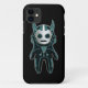 Uma alienígena de desenho animado com chifres, esportivo de um traje espacial preto e teal em moda. Um visitante bonito fora do planeta protegerá seu celular daqueles invasores extraterrestres.