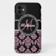 Damask preto-e-rosa personalizado com efeito brilhante IMPRESSO e seu monograma e seu nome com cor de sotaque rosa. Personalize com seu nome e monograma. Damask Gallery© Outras cores e estilos disponíveis em nosso compro, em www.zazzle.com/DamaskGallery*