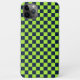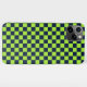 A vibrant checkerboard pattern with alternating neon yellow and black squares creates a striking geometric design, conveying a bold and energetic tone.