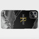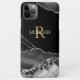 Capa Para iPhone Nome & Monograma, Cinza Preto Agate, Texto Branco